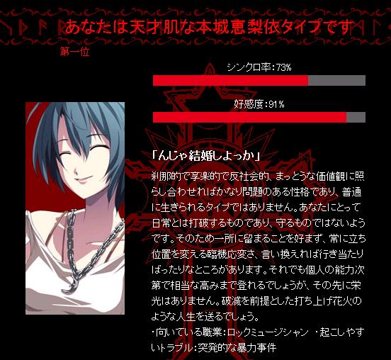 そうそう、本家HPで「騎士団入団試験」と「キャラ性格診断」やってきました。
